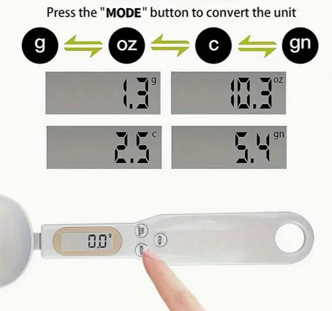 Precizna digitalna vaga u obliku kašike, sa LCD ekranom, za merenje hrane. Višenamenska za čaj, prah, tečnost, pasulj - radi na baterije.